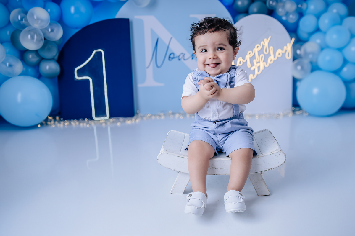 Ensaio Smash The Cake - Noah 1 Ano | Tema Tons de Azul