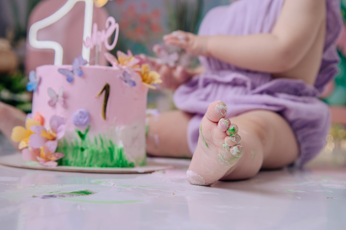 Ensaio Smash The Cake – Sophia 1 Ano | Tema Jardim de Borboletas